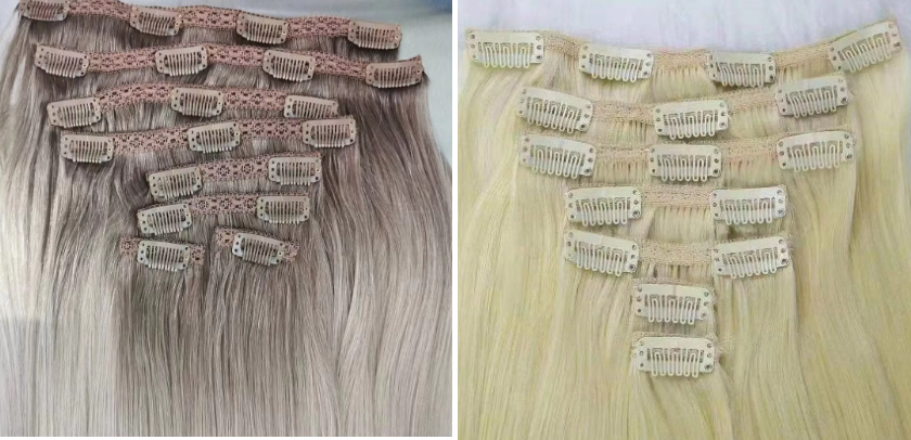 Clip in extensions come in a few popular styles. Classic weft clip ins add both length and volume, seamless clip in hair extensions lay flat for a natural look. One piece halo extensions are quick to put on and take off.