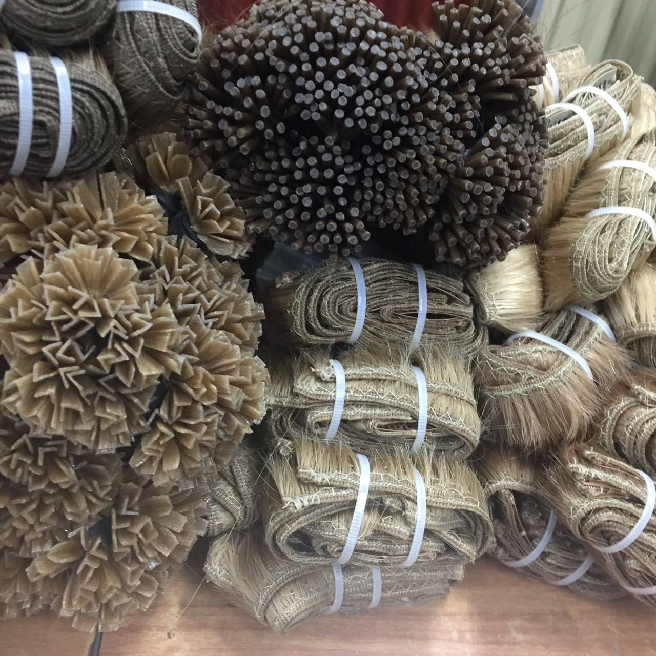 Sew in hair extensions including butterfly wefts, genius wefts, machine wefts, and hand-tied wefts.