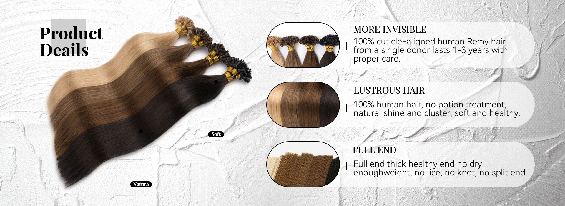 - Keratin Prebonded U Tip Human Hair Extensions Double Drawn Virgin