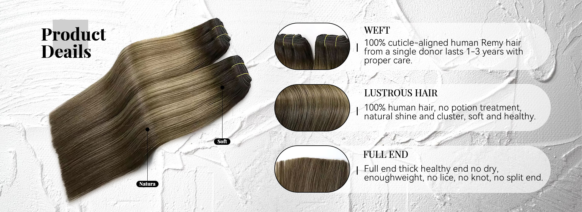 - Virgin Hair Extensions for Women Balayage Machine Weft